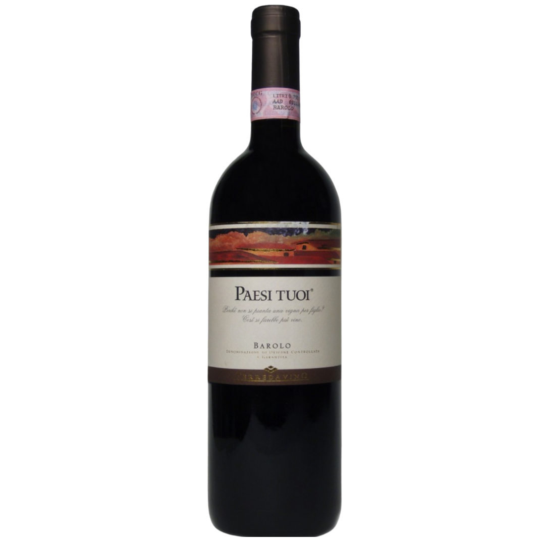TASTING NOTE: This elegant and well balanced Barolo is made with blending wines from a number of vineyards. In fact, the words ‘paesi tuoi’ literally mean ‘your lands’ or ‘your villages’, referencing the different vineyards and villages in the Barolo area, all contributing their unique character to this wine. The 2019 has the typical brick/garnet red colour of Barolo in the glass. On the nose, there is lovely red fruit and herb perfume, plus savoury notes such as truffle, game, spice, tobacco, dried fig and a tarry, earthy note too. It’s fascinating and complex, and, although it’s medium in body, it has masses of flavour. Barolo can be robust with lots of tannin, but the beauty of this wine is that the tannins have softened, so it’s extremely easy to enjoy with food, or sip and savour over a few hours with a good book or film! 14% alcohol.